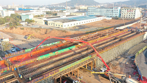 江西赣粤工程公司萍乡市中环东路(S533绕城)EPC项目全长9.44km,是萍乡市东部重要的环形联系通道,也是干线路网骨架最重要的一环。近日,该项目应用公司HLC-IX聚羧酸系高性能减水剂顺利完成武功山互通首联现浇箱梁混凝土浇筑,一次浇筑总方量约600m³,此次顺利浇筑为后期提供了非常重要的施工经验。 针对混凝土浇筑过程中可能出现的粘重、浮浆、骨料下沉等问题,公司技术人员通过大量试验,提供了能有效解决了现浇梁混凝土敏感、难泵送难题的聚羧酸高性能减水剂产品。 奋楫扬帆风正劲,公司在探索实践中主动担当作为,大力发扬为民服务孺子牛、创新发展拓荒牛、艰苦奋斗老黄牛精神,在“十四五”开局之年乘风破浪,勇往直前,为助力品质工程不懈努力。