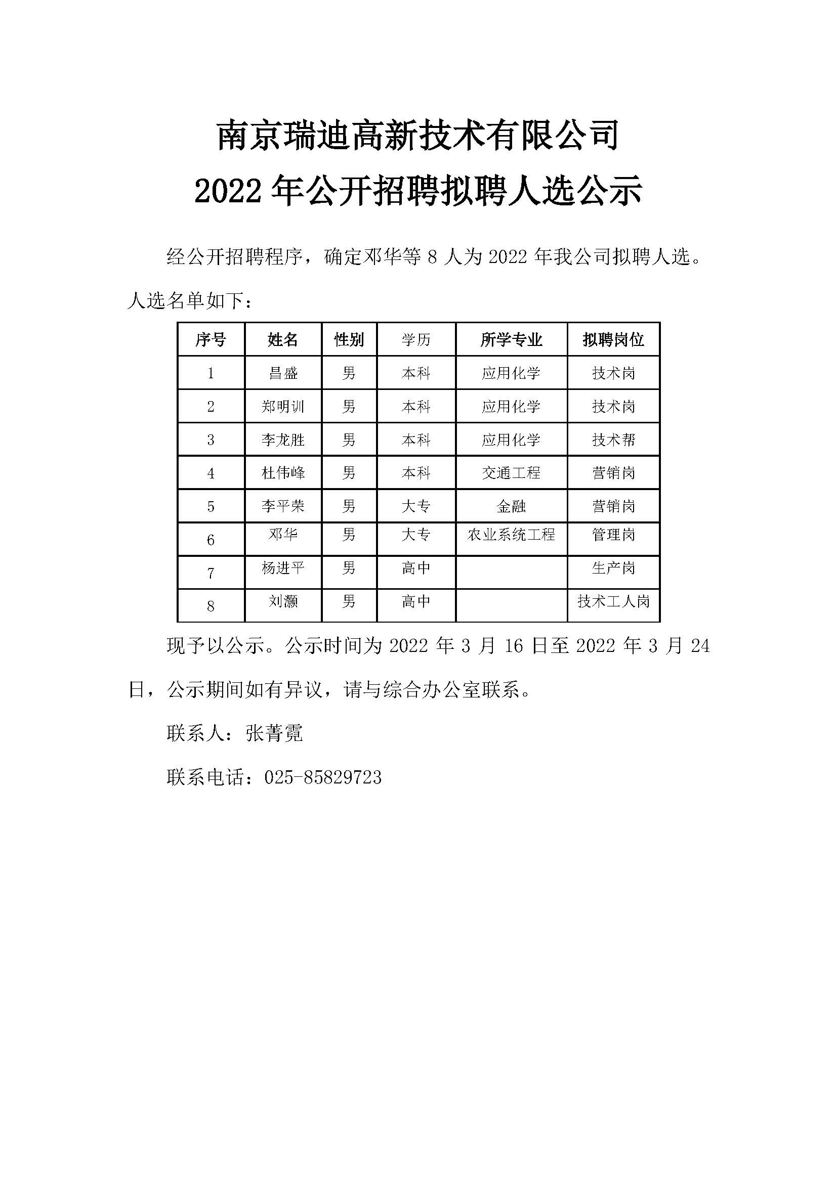米乐电竞app(集团)股份有限公司,2022年公开招聘拟聘人选公示