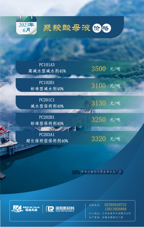 【聚羧酸系减水剂母液月度最新价格】丨2023年6月