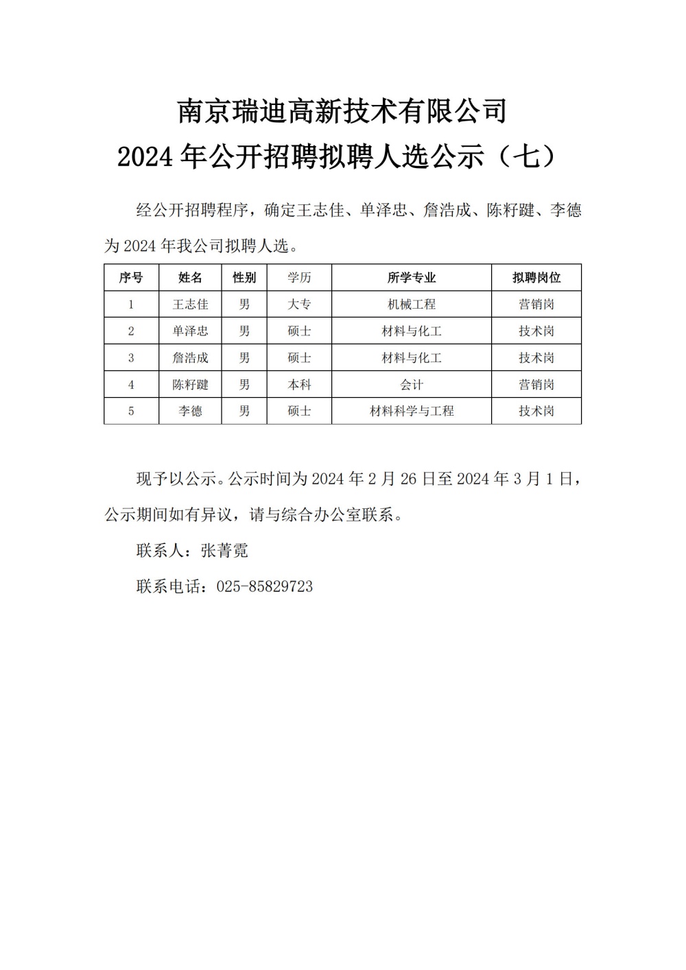 米乐电竞app(集团)股份有限公司,2024年公开招聘拟聘人选公示(七)