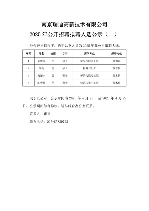 米乐电竞app(集团)股份有限公司,2025年公开招聘拟聘人选公示(一)