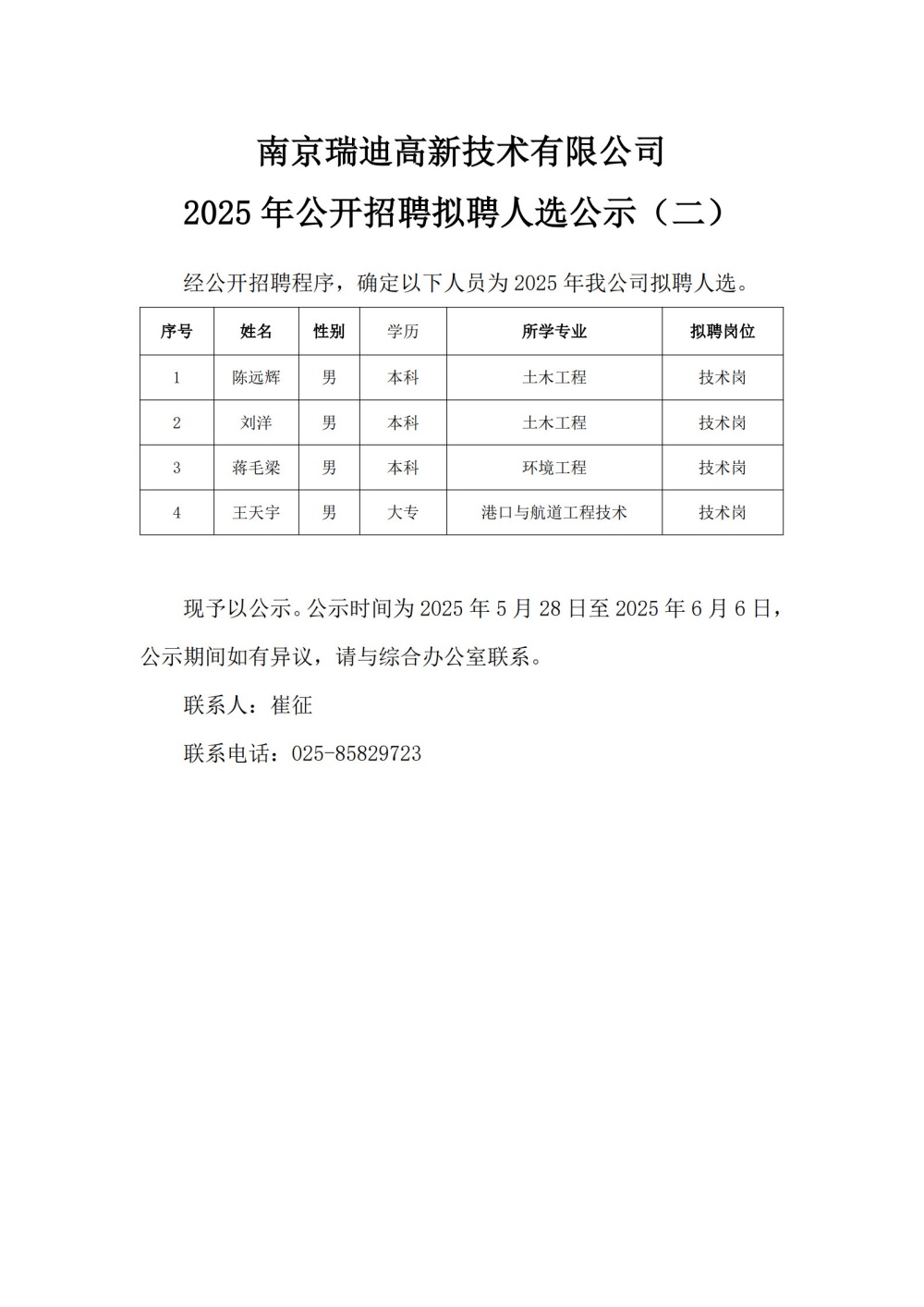 米乐电竞app(集团)股份有限公司,2025年公开招聘拟聘人选公示(二)